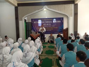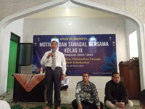 Kepala MTsN 30 Jakarta Drs. H. Bisri, MA dalam sambutannya di hadapan para siswa dan orang tua siswa kelas 9, menyampaikan terimakasih atas support dan dukungannya, baik saat ujian praktik Qur’an beberapa hari lalu dan hari ini bisa hadir mendampingi saat kegiatan tawakal.