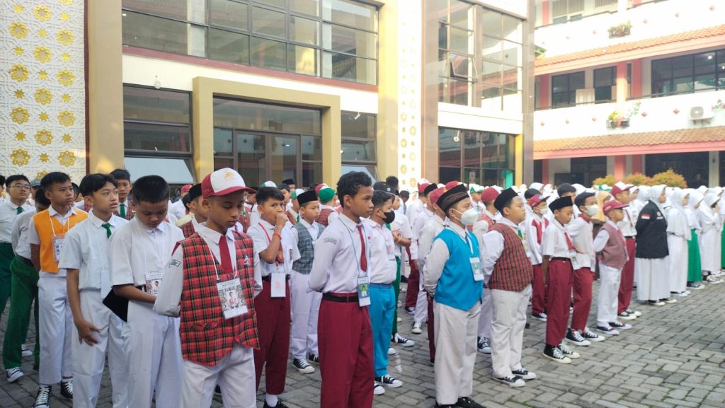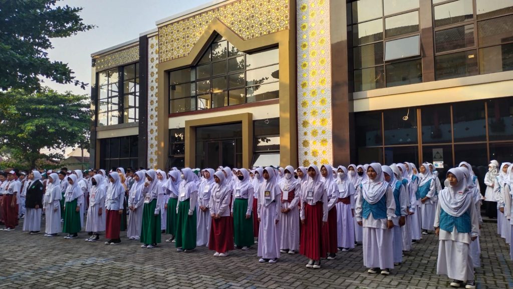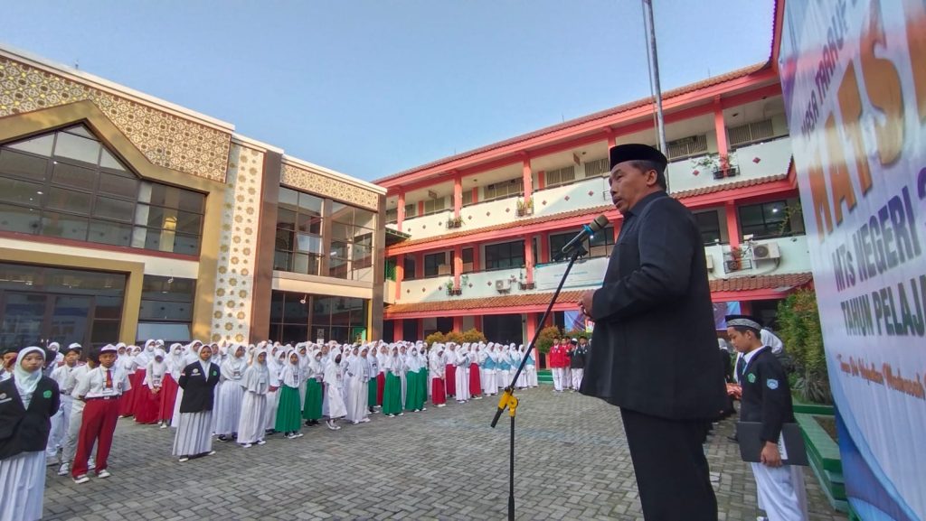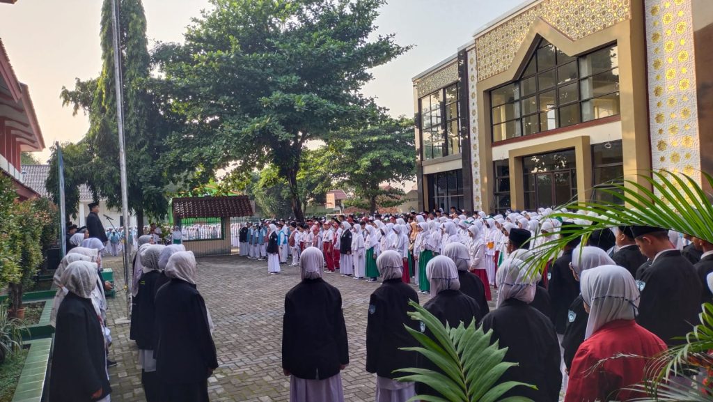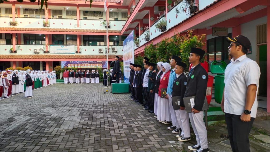 Upacara bendera sekaligus pembukaan Matsama 2023/2024 diikuti oleh seluruh siswa, tenaga pendidik dan tenaga kependidikan di halaman madrasah. Sebagai petugas upacara anggota OSIS.