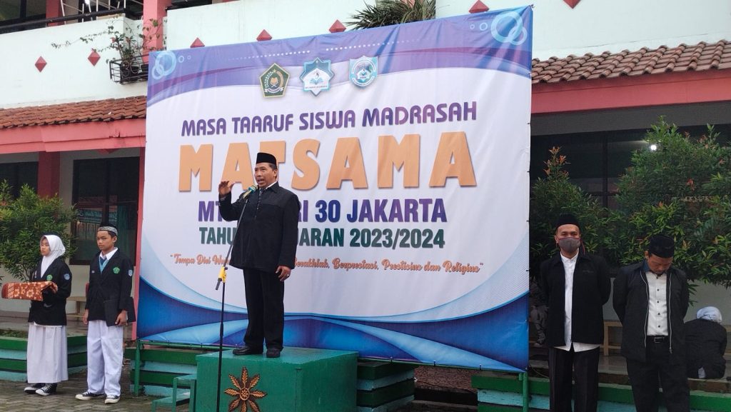 Masa Ta’aruf Siswa Madrasah (MATSAMA) tahun pelajaran 2023/2024 secara serentak dilaksanakan pada Senin, 17 Juli 2023, hampir di seluruh Indonesia tak terkecuali di MTsN 30 Jakarta.