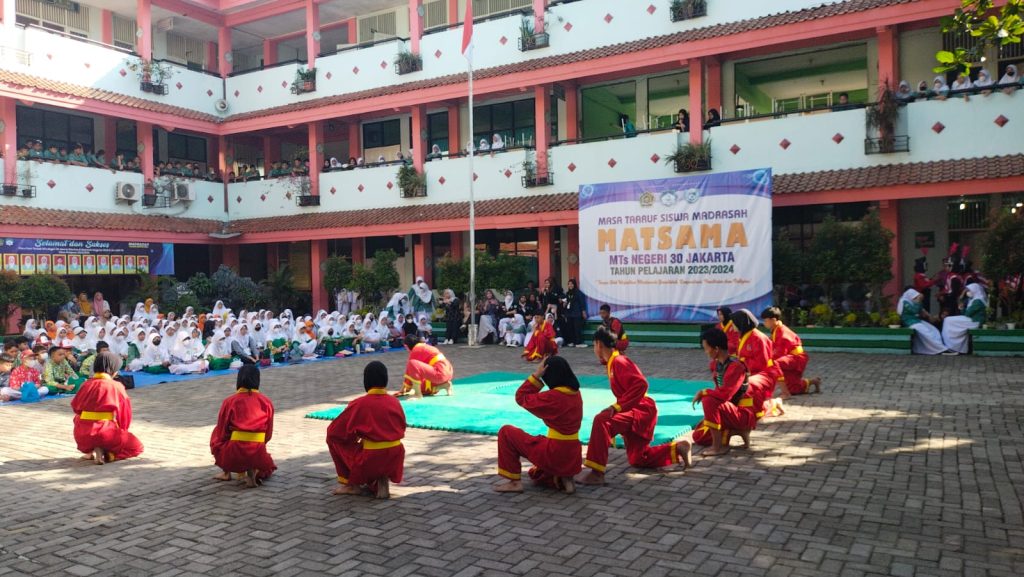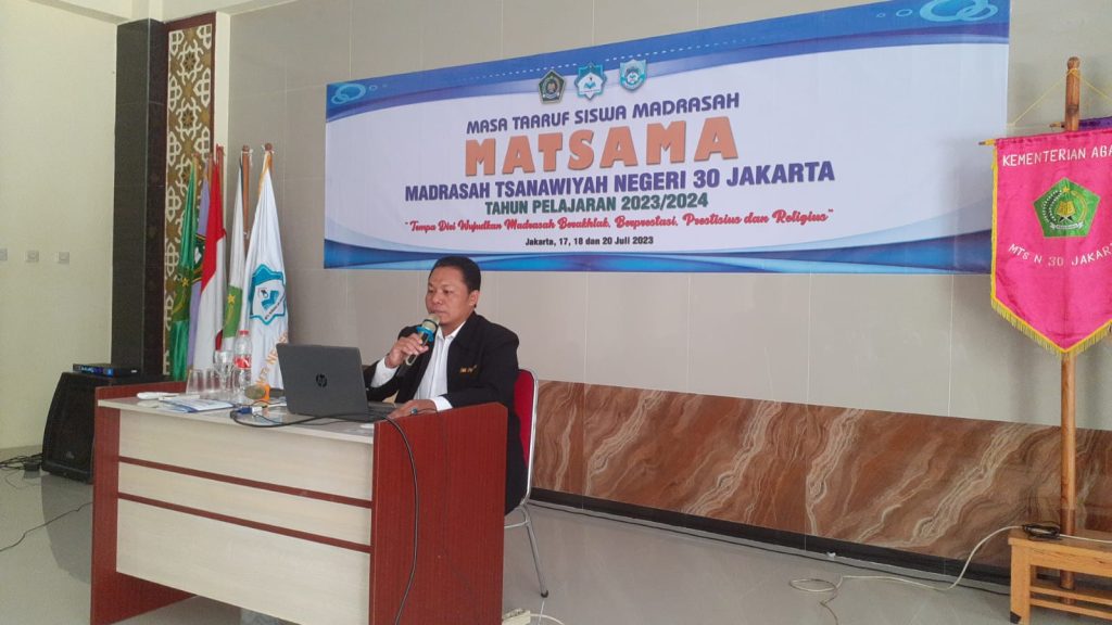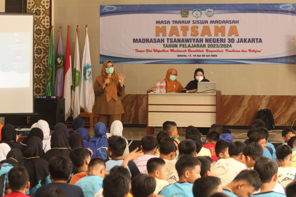 Rangkaian kegiatan Matsama yang dilaksanakan selama 3 hari diisi dengan pengenalan lingkungan madrasah. Diantara materi sejarah madrasah, tata Krama dan cara bergaul siswa madrasah yang disampaikan oleh Wakamad Bidang Humas Ibu Iis Isnaeni, S.Pd., M.Pd. dilanjutkan Kurikulum Merdeka dan sistem pembelajaran di MTsN 30 oleh Wakabid. Kurikulum Ufi Izma Ismiati, S.Pd., MM, materi Kesiswaan, pembinaan karakter dan tata Tertib siswa oleh Wakabid. Kesiswaan Romelan, S.Pd.I, MM, Sarpras Madrasah oleh Slamet Wildani, S.Pd., M.Pd., Moderasi beragama dan pengenalan langgam bacaan Qur’an oleh Ustadz Mufti Amin, S.Ag., MM dan kesehatan remaja oleh dokter Rini dari Puskesmas Munjul Cipayung.