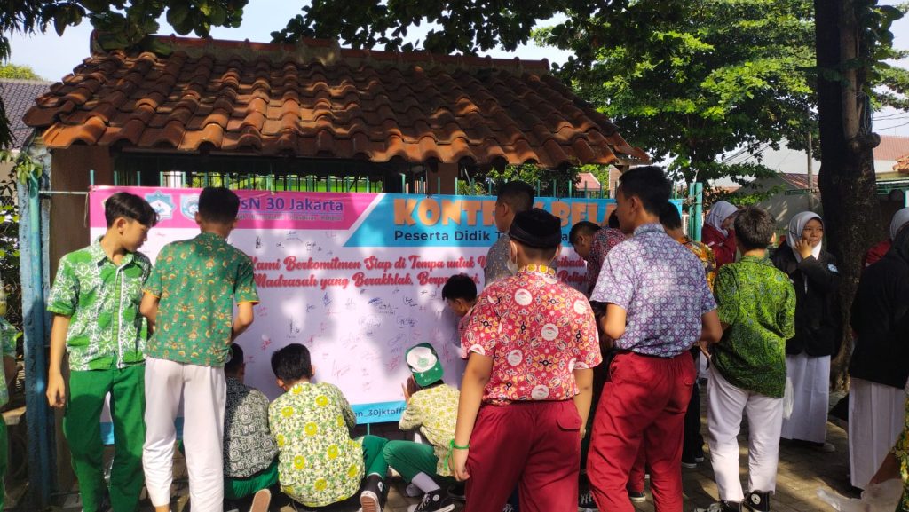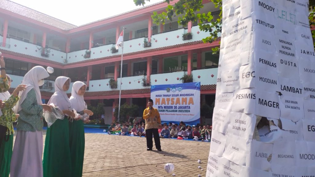 Diakhir motivasi, sebagai simbolis peserta diajak menghancurkan perilaku buruk dalam diri yang sudah dituangkan dalam bentuk tulisan dari pengakuan peserta yang diserahkan ke panitia untuk di tempel di sebuah menara kemudian dilempar dengan gulungan kertas. Siswa melempar dengan semangat diiringi kalimat takbir serta diiringi niat menghilangkan perilaku buruk dalam dirinya. Kemudian dilanjutkan dengan menandatangani Kontrak belajar yang isinya “Kami berkomitmen siap ditempa untuk menjadi pribadi yang Berakhlak, Berprestasi, Religius dan Prestisius” yang merupakan motto MTsN 30 Jakarta.