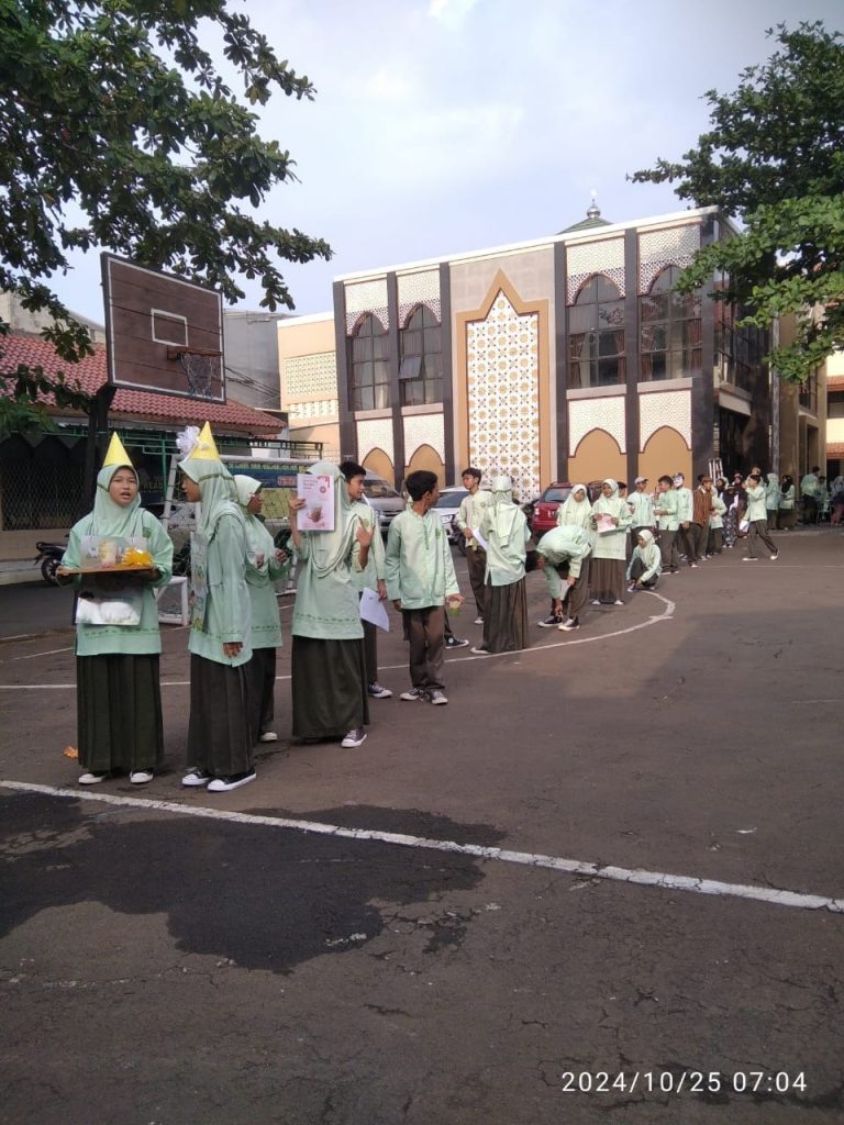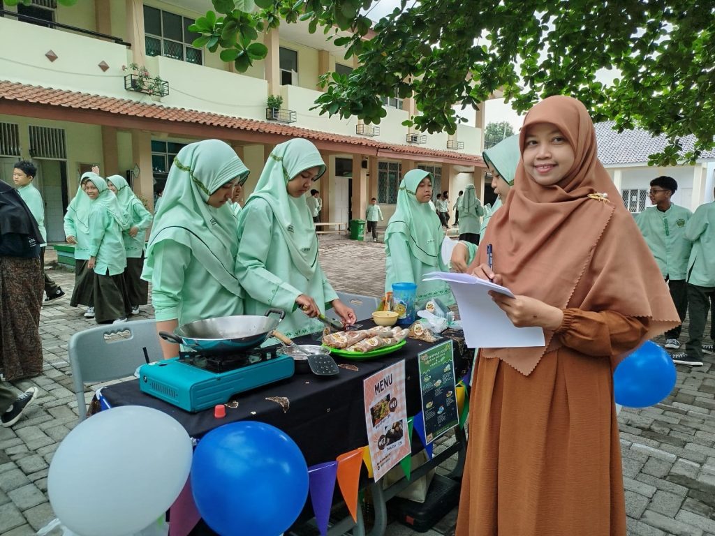 KABAR MADRASAH – BERITA; . Diawali pembukaan dengan sambutan wakil kurikulum Mis Ufi Izmah Ismiati, MM. Dilanjutkan dengan food show masing-masing kelompok stand jajanan yang dipandu oleh MC keren si kembar Tanaya dan Naura, masing-masing peserta sebelum menjual jajanan hasil karya kelompoknya mereka memamerkan dan mengenalkan dipanggung dengan gaya dan jargonnya untuk menarik pembeli.